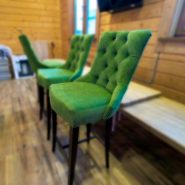 Заказали в ткани Премьер. Стулья с гвоздиками по спинке. По срокам чуть затянули на неделю — говорят, что из-за карантина были перебои с поставками. Результатом очень довольна. Всем рекомендую.